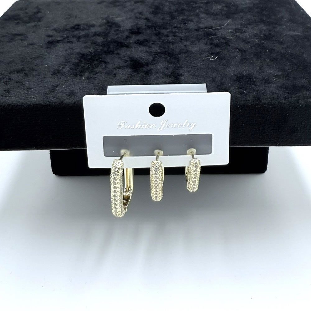 This elegant triple hoop earring set is crafted from gold-tone brass and studded with sparkling zirconia stones. This set, which highlights your elegance, adapts to every style and every environment. You can combine three hoop earrings of different sizes as you wish and wear them both in daily life and on special occasions. While the bright shine of zircon stones attracts attention, it offers comfortable use all day long thanks to its nickel-free and hypoallergenic structure. Since it comes in a stylish gift box, it is also a perfect choice to gift to your loved ones.