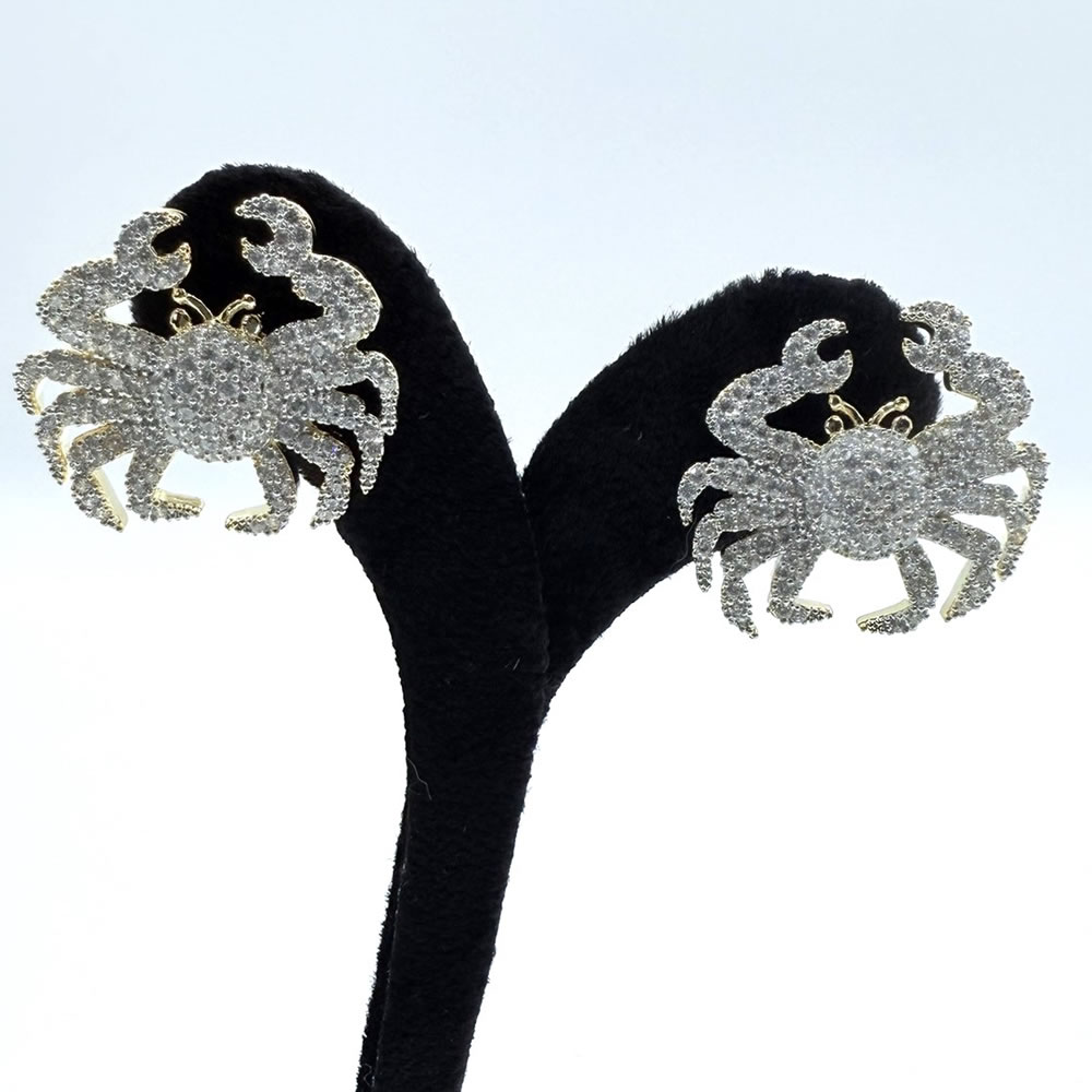 Crab Shaped Brass Earring with Zircon Stone