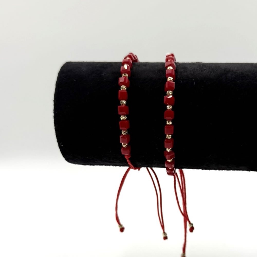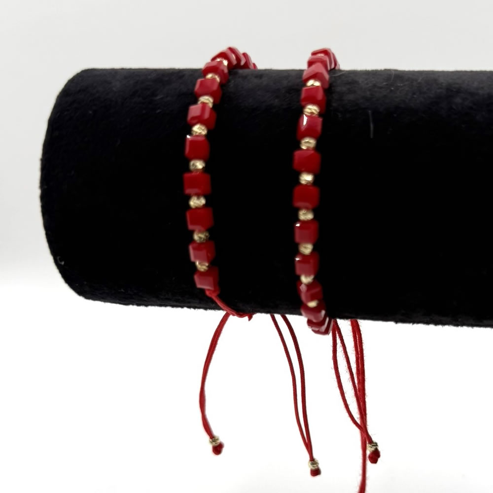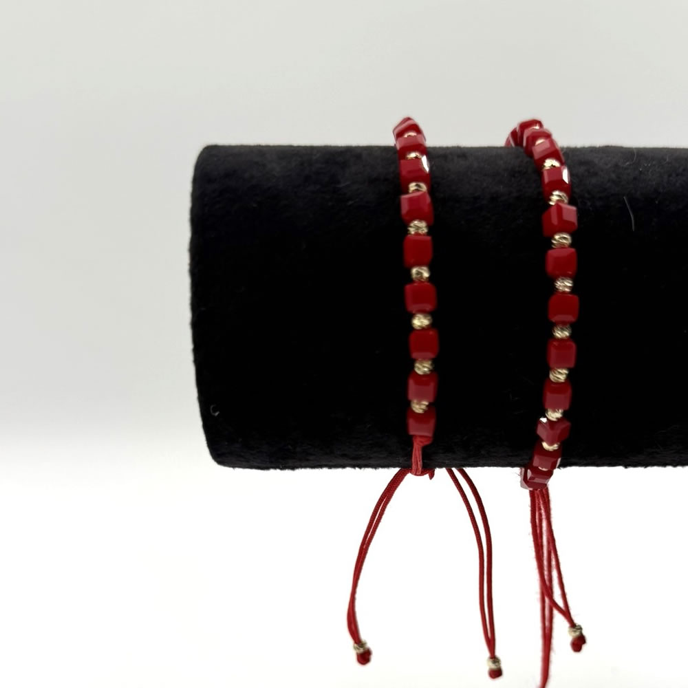 Altın Detaylı Ayarlanabilir Kırmızı Boncuklu Bileklik