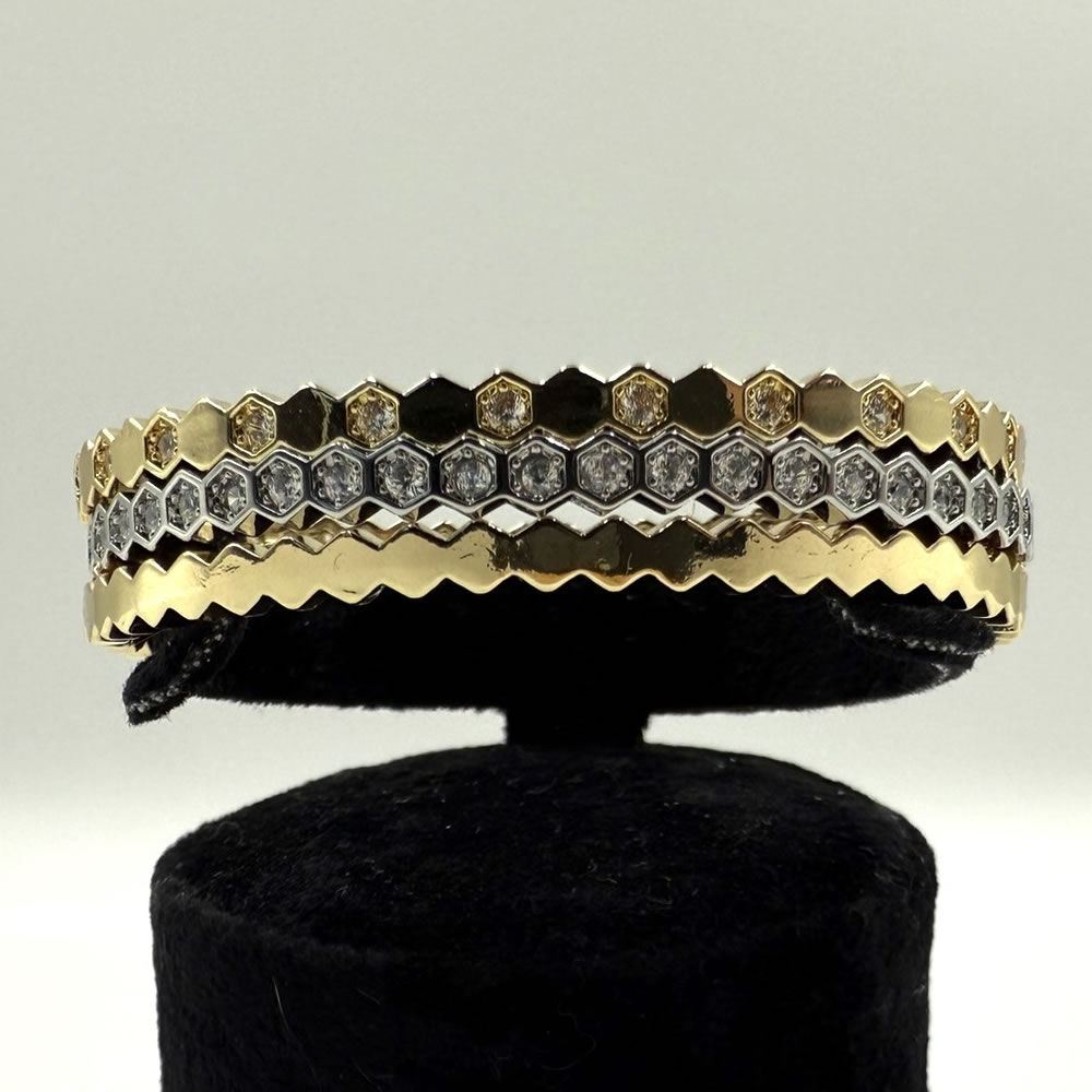 Altın Gümüş Altıgen Üçlü Bileklik Seti göz alıcı bir stil vadeden bu şık Altın Gümüş Alt