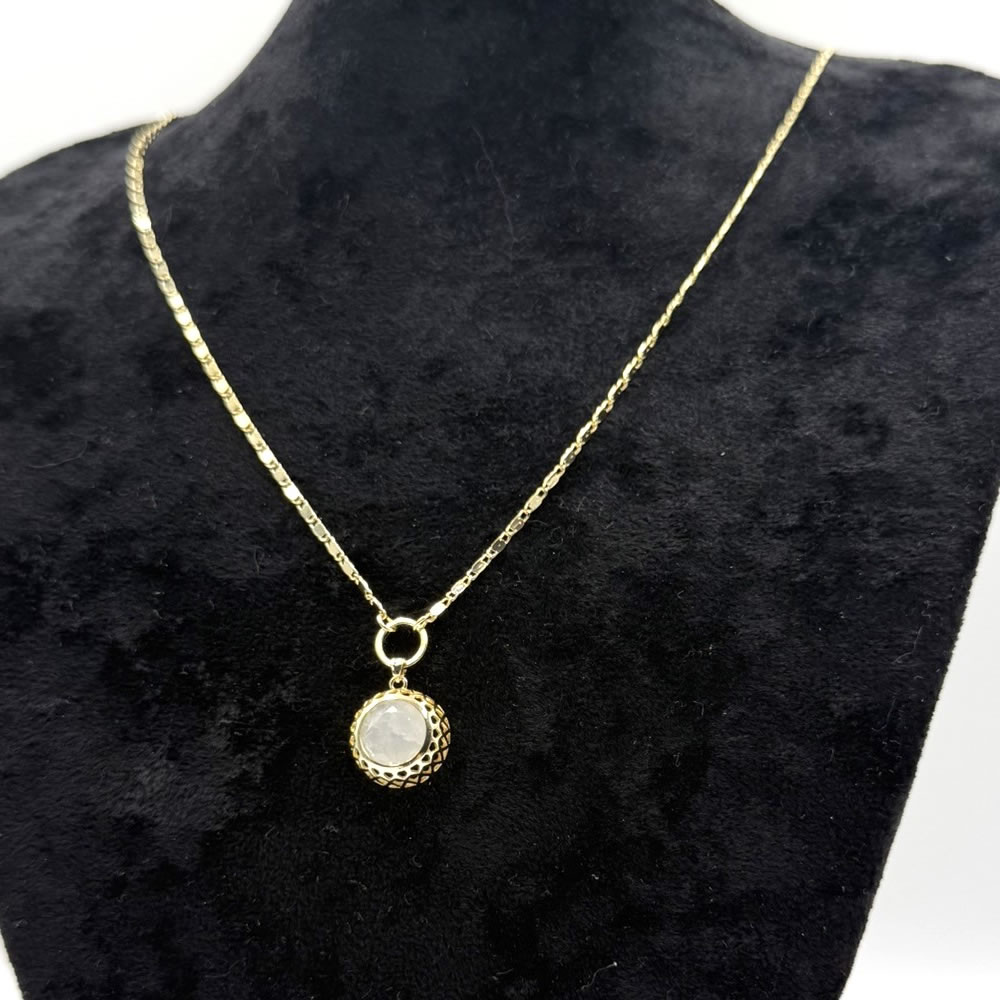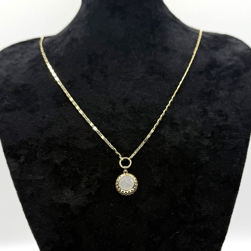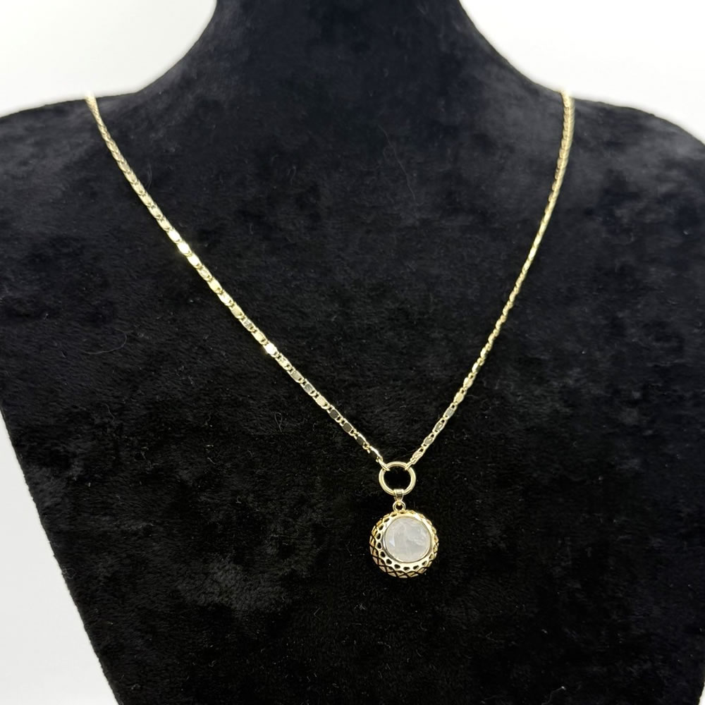 • Altın kaplamalı pirinç zincir ve yuvarlak taş detaylı kolye ucu